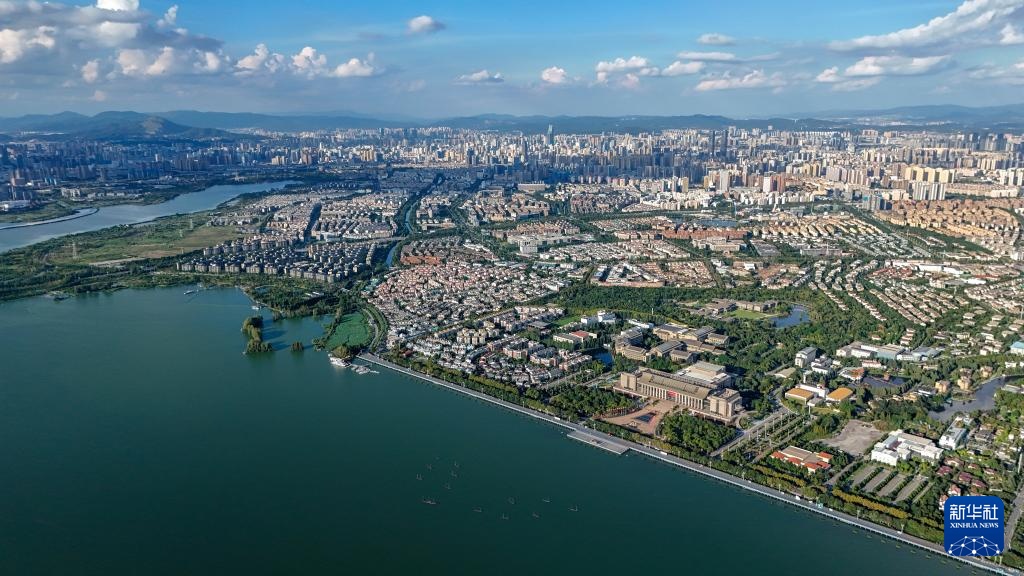 2025年9月3日拍摄的滇池风光(无人机照片)。新华社记者 彭奕凯 摄