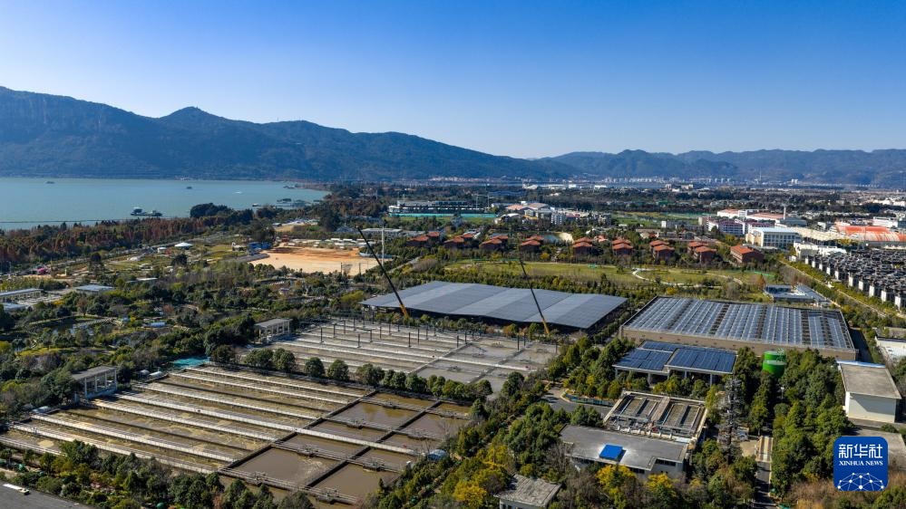 这是位于滇池边的昆明市第七、八水质净化厂(1月22日摄,无人机照片)。该水质净化厂设备更新改造项目已于2025年底竣工,污水处理效率得到有效提升。新华社记者 胡超 摄