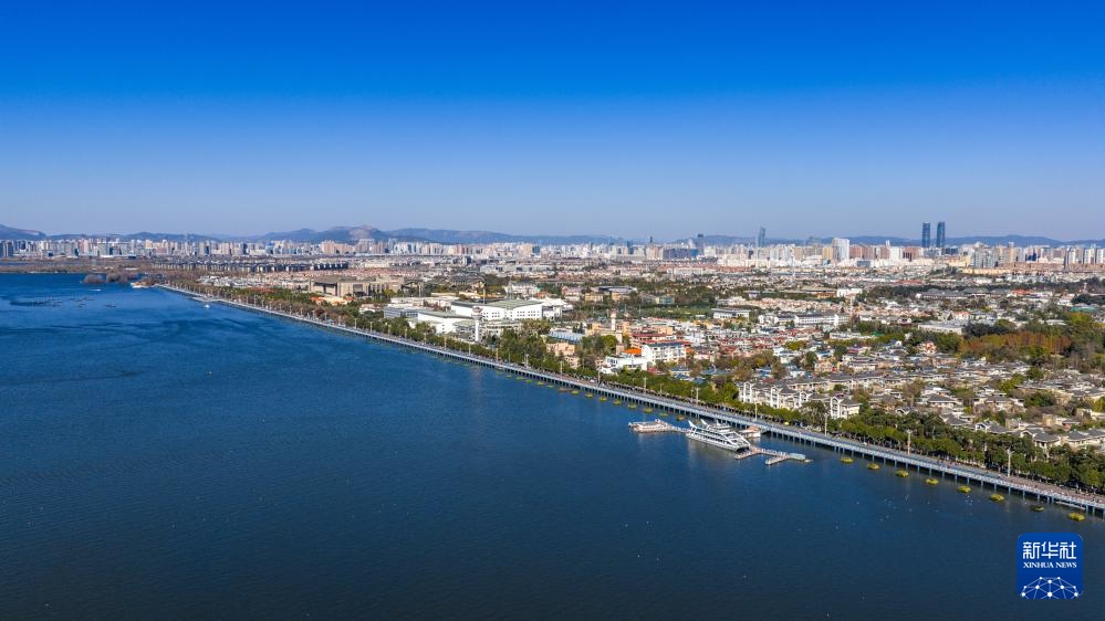 1月22日宏粤配资拍摄的滇池景色(无人机照片)。新华社记者 彭奕凯 摄