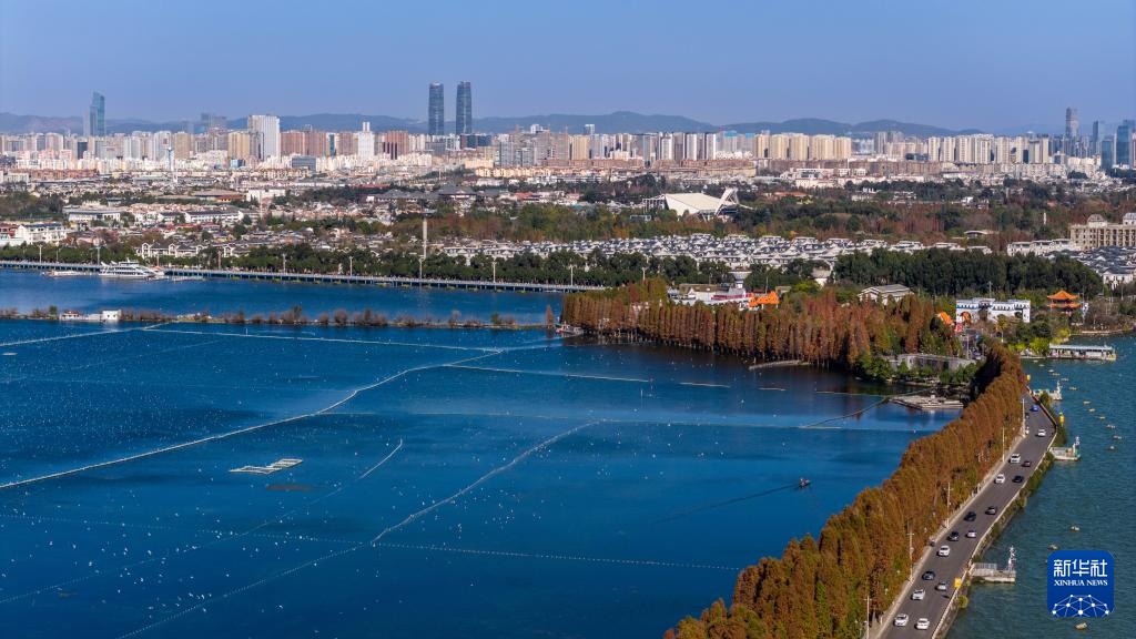 1月22日拍摄的滇池景色(无人机照片)。新华社记者 彭奕凯 摄